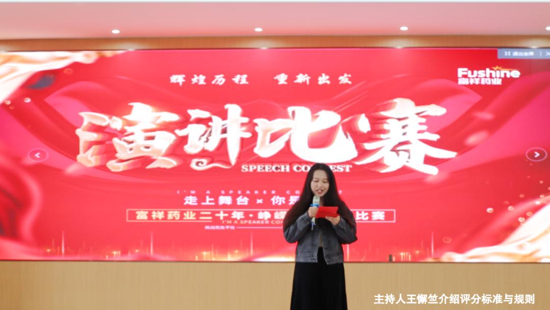 二十而冠,風(fēng)華正茂。富祥藥業(yè)矢志于成為全球知名的制藥企業(yè),打造富祥百年品牌。此次演講比賽不僅豐富了公司員工的文化生活,營造了濃厚的企業(yè)文化氛圍,同時也激勵所有富祥人應(yīng)立足新時代、把握新機(jī)遇、勇?lián)率姑?、展現(xiàn)新作為,以昂揚(yáng)向上的進(jìn)取姿態(tài)投身于公司的發(fā)展建設(shè)中,聚焦目標(biāo)再出發(fā)!