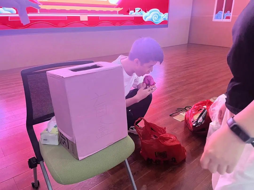 “抽中”懲罰“盲盒”卡片的員工,需要現(xiàn)場進行“十秒吃火龍果”、一口吃月餅、對異性唱一首歌等搞怪“懲罰”,整場活動大家玩得不亦樂乎,歡聲笑語不斷。
