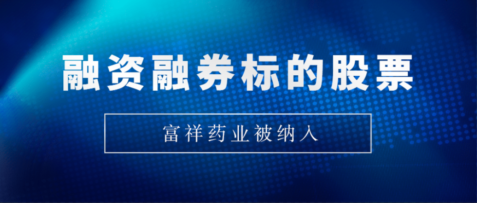 富祥藥業(yè)納入融資融券標(biāo)的股