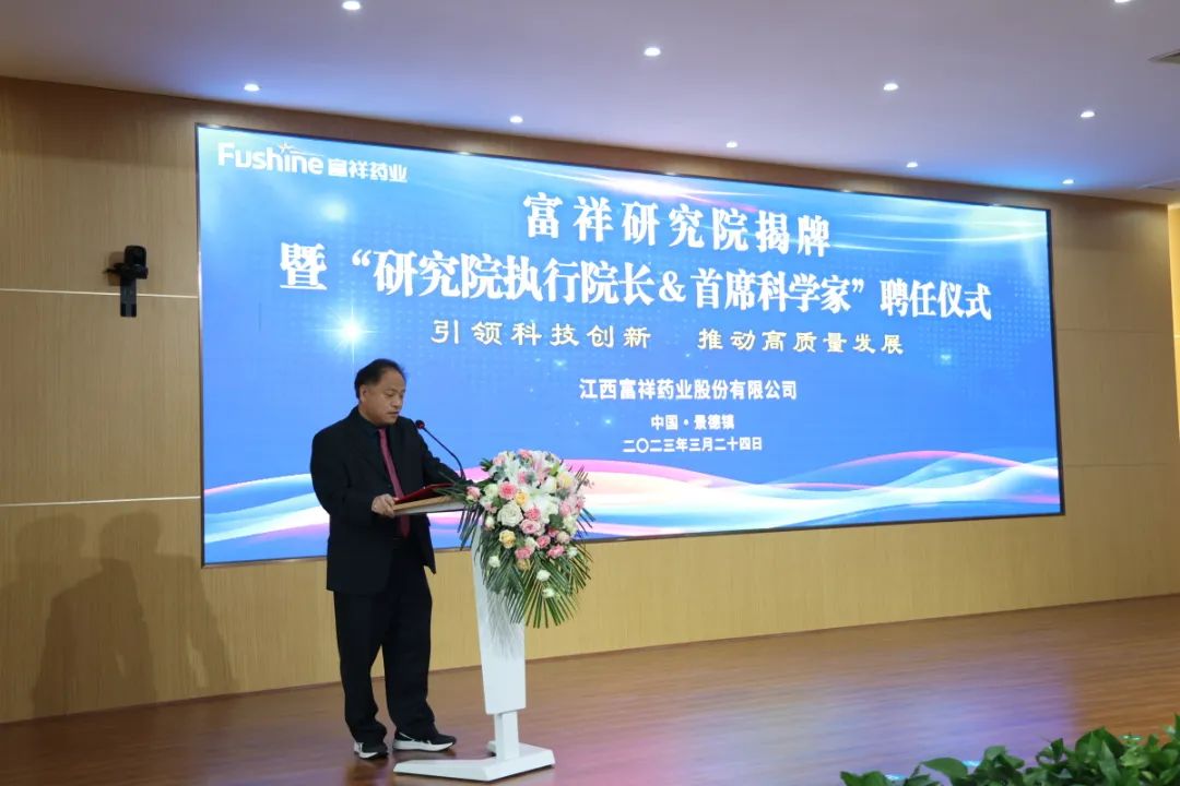 高新區(qū)管委會主任、昌江區(qū)委書記倪衛(wèi)春在致詞中指出,富祥藥業(yè)是全市優(yōu)質(zhì)的民營企業(yè)代表之一,多年來深耕醫(yī)藥大健康產(chǎn)業(yè),主動轉(zhuǎn)型升級,在新賽道上又邁出了堅實的一步。研究院的成立是立足自身產(chǎn)業(yè)特色、增強工業(yè)研發(fā)實力、助推新舊動能轉(zhuǎn)換的重要舉措,將成為招大引強的重要平臺、人才集聚的重要基地、工業(yè)倍增的重要助力,對全區(qū)乃至全市的工業(yè)發(fā)展和科技創(chuàng)新領域都具有重要意義。昌江區(qū)將繼續(xù)堅持以服務工業(yè)發(fā)展、服務科技創(chuàng)新為己任,積極提供最優(yōu)質(zhì)的服務、創(chuàng)造最優(yōu)良的環(huán)境,幫助研究院和廣大優(yōu)質(zhì)企業(yè)盡快發(fā)展壯大,推動技術成果更快轉(zhuǎn)化為現(xiàn)實生產(chǎn)力,助力全市經(jīng)濟社會持續(xù)健康發(fā)展。